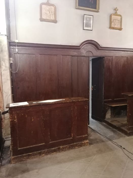 De part et d'autre du maître-autel, mais un peu en avant, les stalles se composent d'une rangée de sièges en partie pourvus d'un pupitre et agenouilloir. Le dossier est un haut lambris incluant côté Nord la porte d'accès à la sacristie avec son fronton cintré. Décor de panneaux moulurés en creux, très sommaires.