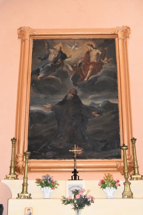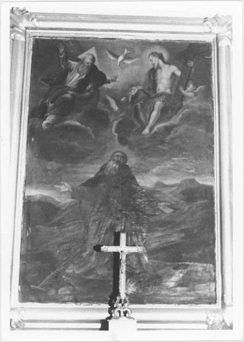 tableau et son cadre : saint Antoine ermite et la sainte Trinité