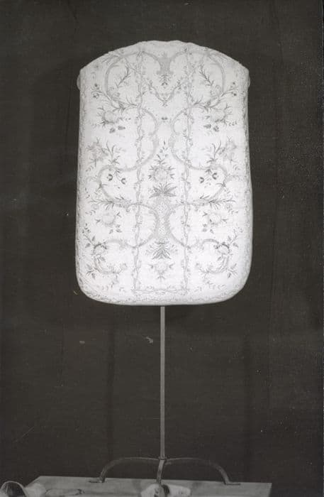 service pontifical dit de l'Evêque Valperga composé de 15 pièces : 2 chapes, 1 chasuble, 4 dalmatiques, 2 étoles, 3 manipules, 1 bourse de corporal, 2 chapes sans décor pour chapiers (chantres)