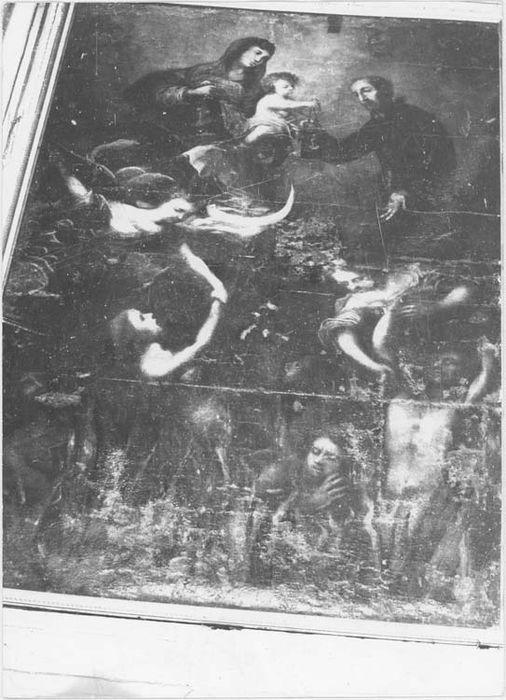 toile avec son encadrement : Les Ames du Purgatoire et Notre-Dame du Mont Carmel