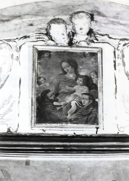 tableau et son cadre : Vierge à l'Enfant entre deux Saints franciscains
