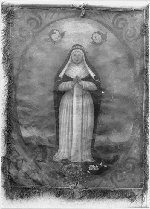 POP | Plateforme ouverte du patrimoinetableau, ancienne bannière de procession : La Vierge du Rosaire et saint Dominique (avers), sainte Rose de Lima (revers)