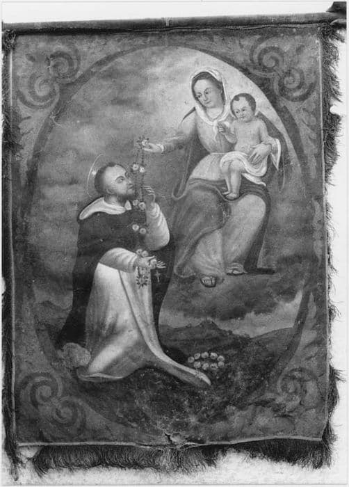 tableau, ancienne bannière de procession : La Vierge du Rosaire et saint Dominique (avers), sainte Rose de Lima (revers)