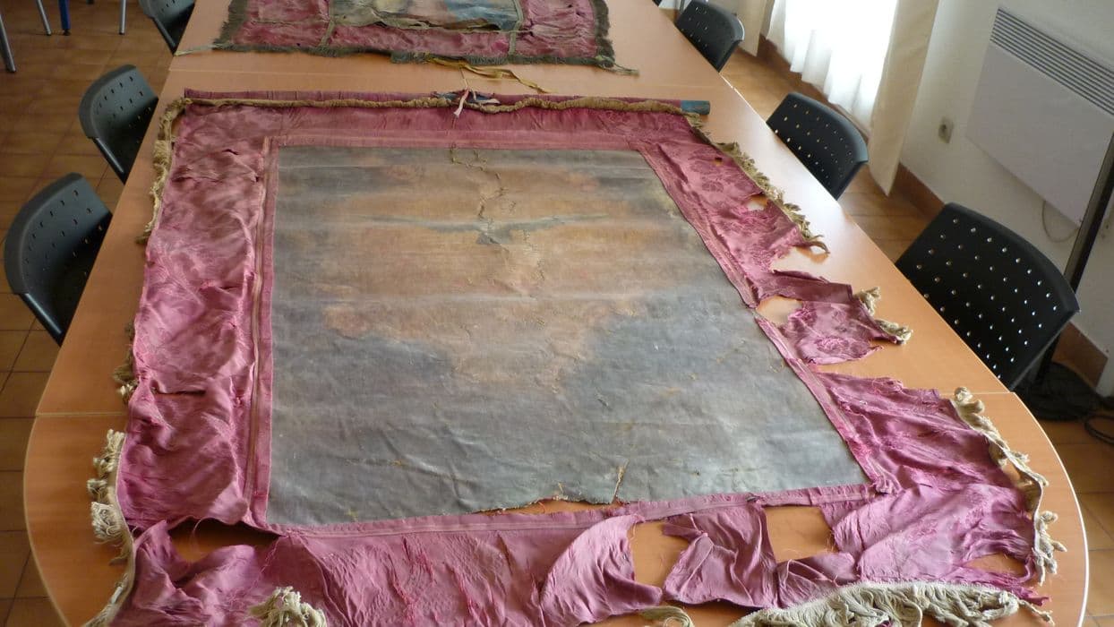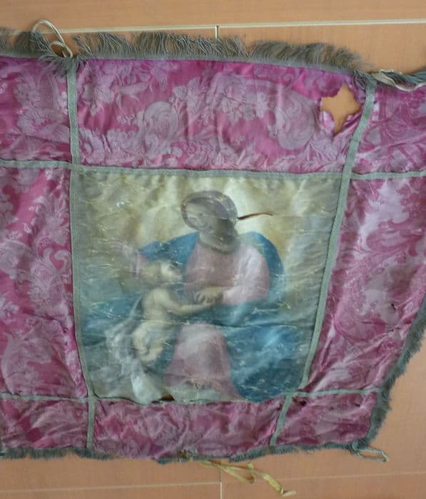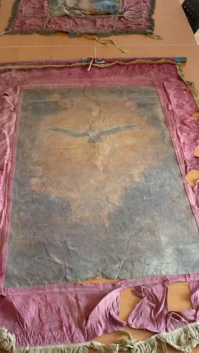 bannière de procession : Vierge à l'Enfant (avers), Saint Esprit (revers)