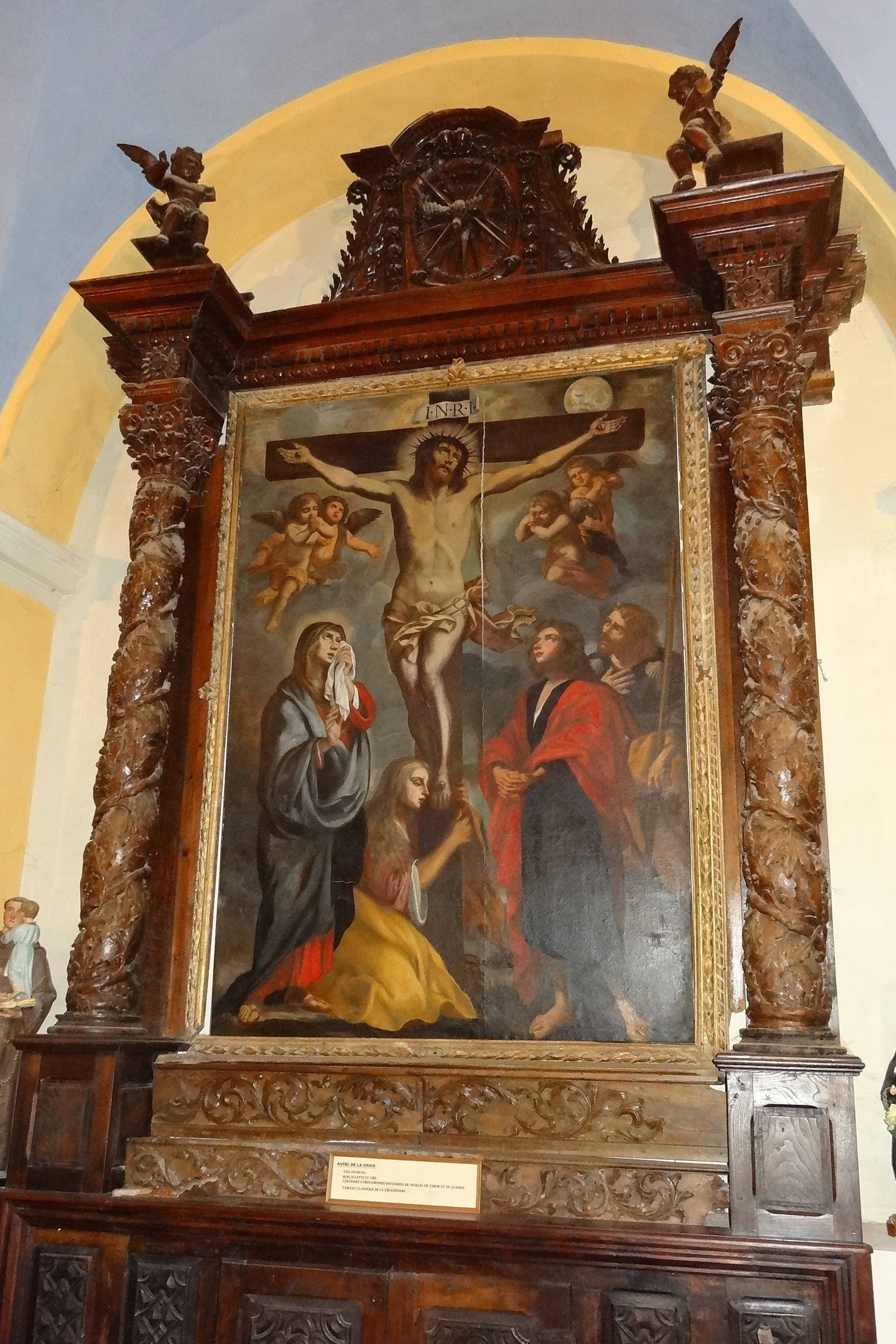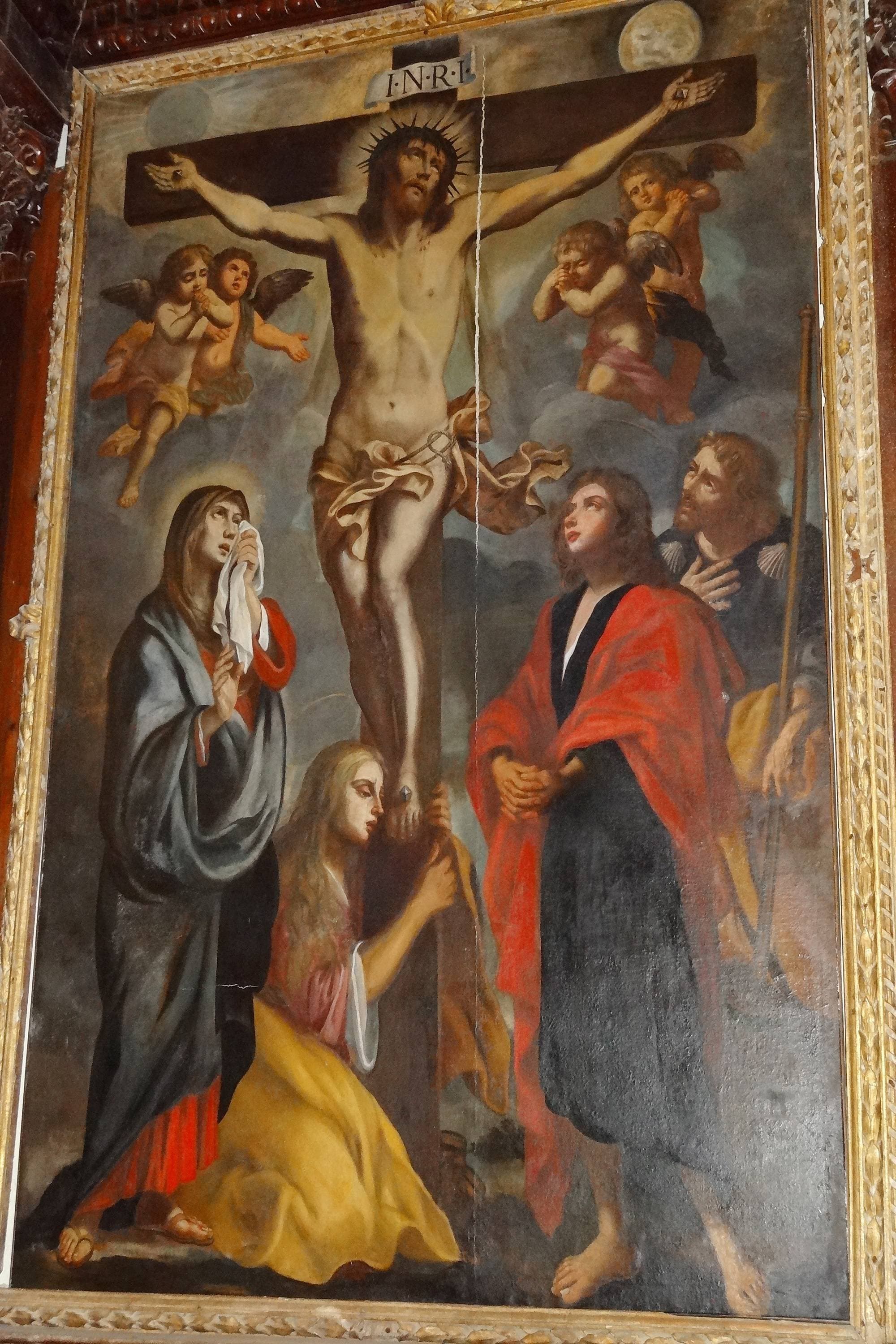 Christ en croix ; Crucifixion Vierge ; saint Jean l'évangéliste ; saint Jacques le Majeur