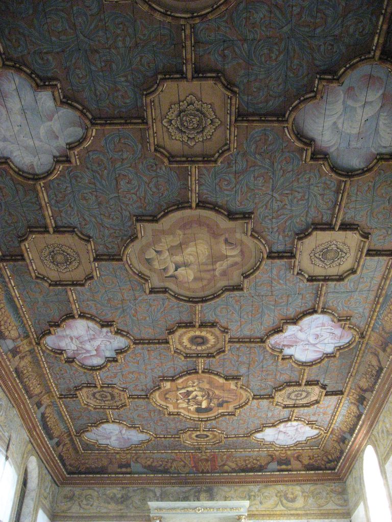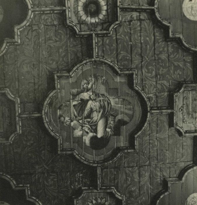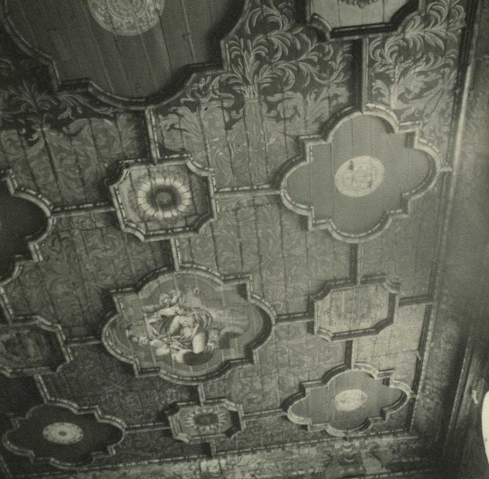 Les lambris décoraient autrefois tout le bas des murs et étaient surmontés de peintures. Ces peintures formaient une succession de médaillons. Il en reste seulement deux.