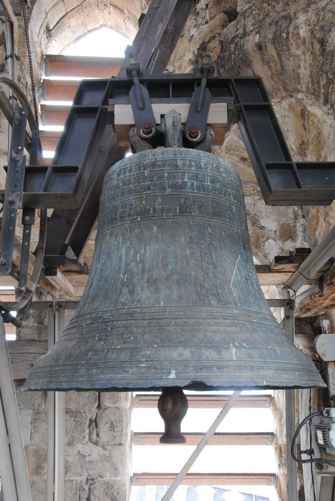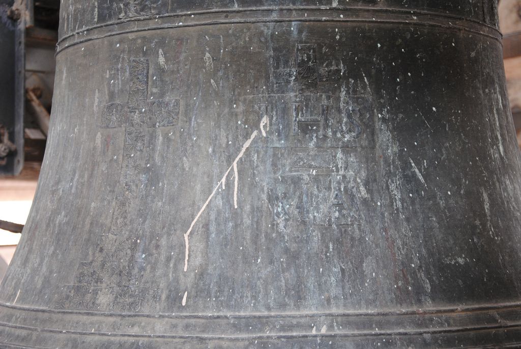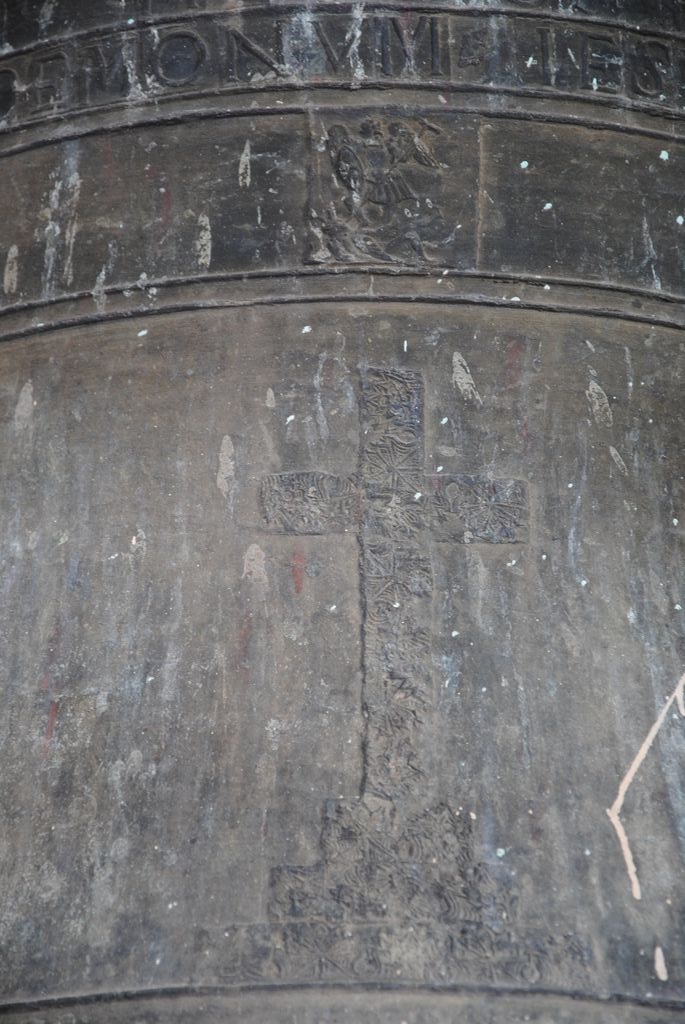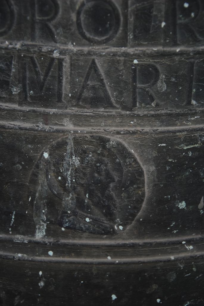 On lit : LAUDO DEUM VERUM POPULUM VOCO CONGREGO CLERUM FESTA DECORO MORTUOS PLORO REPELLO TEMPESTATEM VOX MEA CONCTORUM FUGATRIX DEMONUM JESUS MARIA TE DEUM LAUDAMUS SALVATOR SAECULI 1653 28 MAII J.H.S M.A.