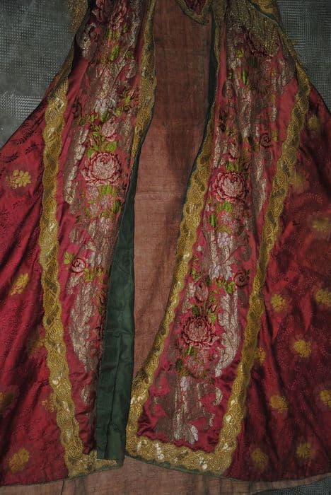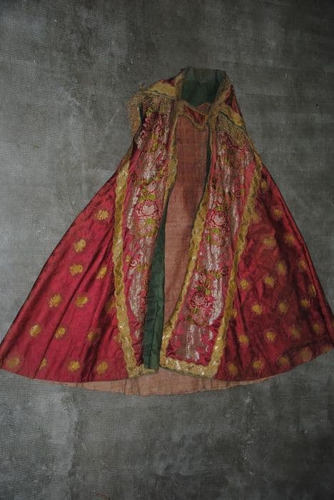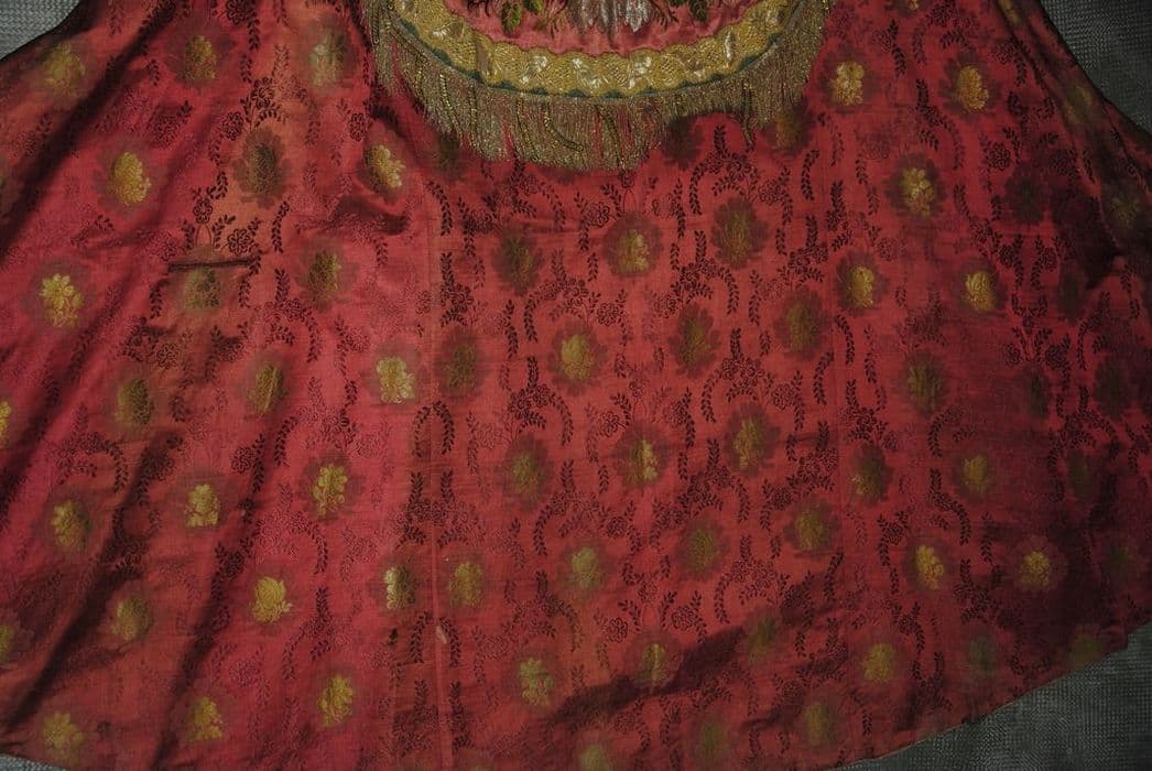 Chape brodée de couleur rouge.