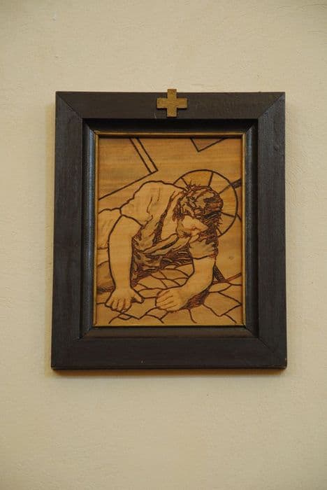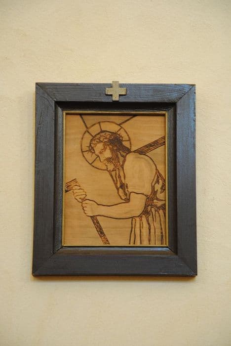 peinture monumentale ; tableau ; autel ; table ; siège ; chemin de croix ; luminaire d'applique d'église