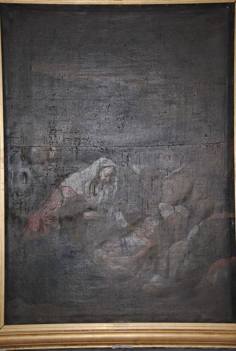 Oeuvre très effacée, lardée en 1793 de 5 coups de couteau par un fanatique, le notaire de Quintenas.