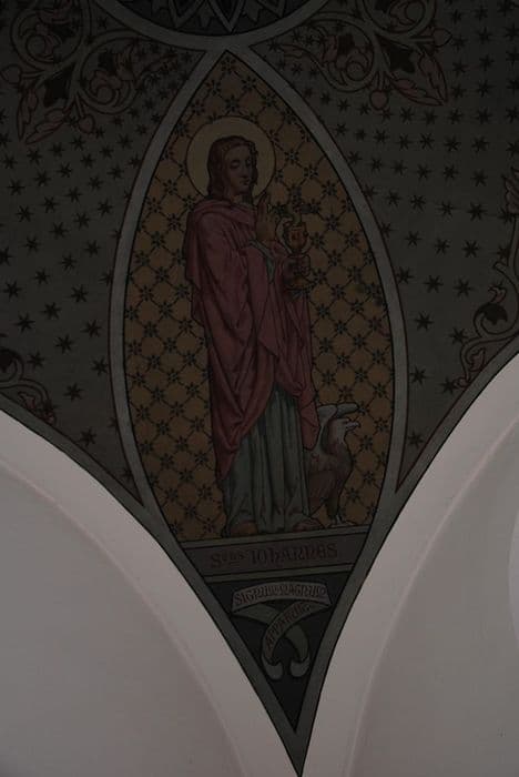 décor d'architecture ; peinture monumentale ; statue ; fonts baptismaux ; confessionnal ; orgue ; siège ; chemin de croix ; verrière ; autel ; clôture de choeur