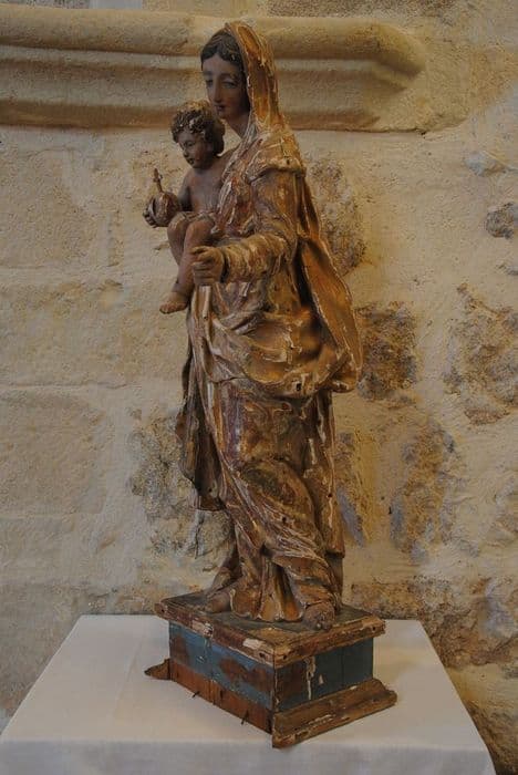 statue en bois peinte et dorée de Vierge à l'Enfant