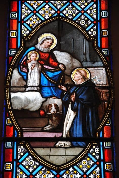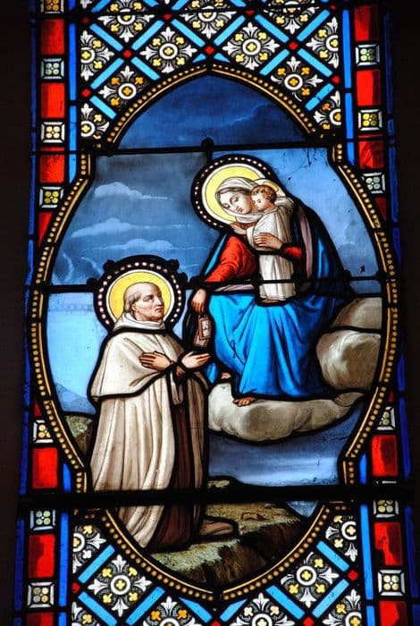 Vierge ; remise ; rosaire ; saint Dominique de Guzman ; scapulaire ; saint Simon Stock