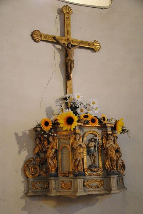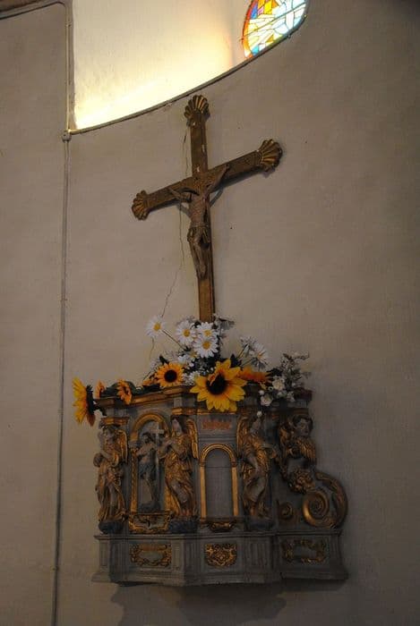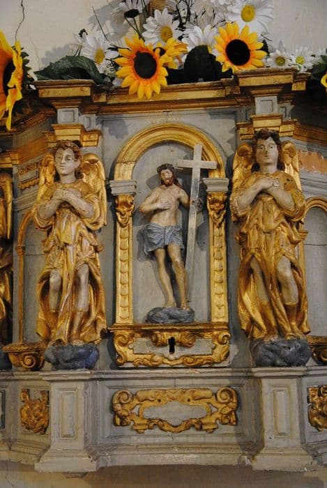 Cet ancien tabernacle a une porte ornée de la statue du Christ en Ecce Homo. ses pilastres sont formés d'anges-cariatides supportant l'entablement.