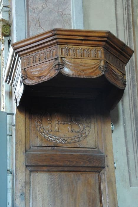 POP | Plateforme ouverte du patrimoinechaire à prêcher : cuve servant de base à l'autel face au peuple, lambris et abat-voix surmontant une stalle