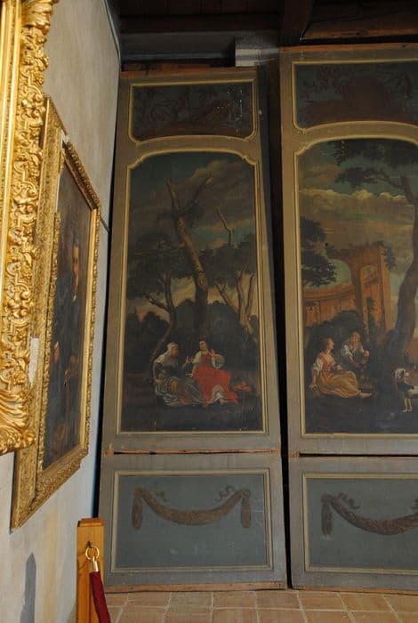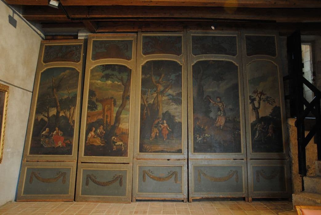 Panneaux peints en bois : un panneau simple et cinq panneaux doubles.