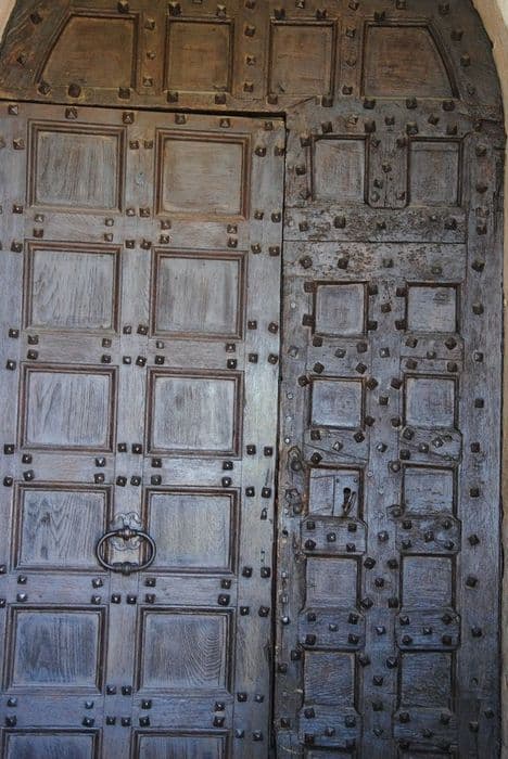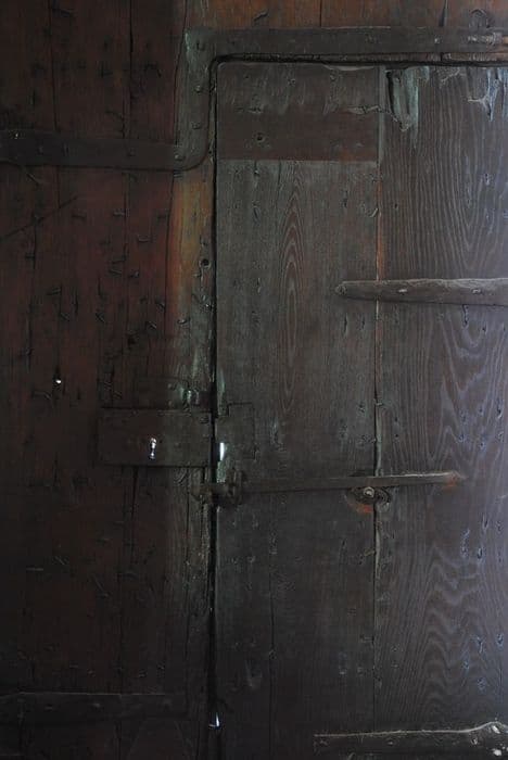 Porte en bois d’accès à la sacristie par la façade ouest.