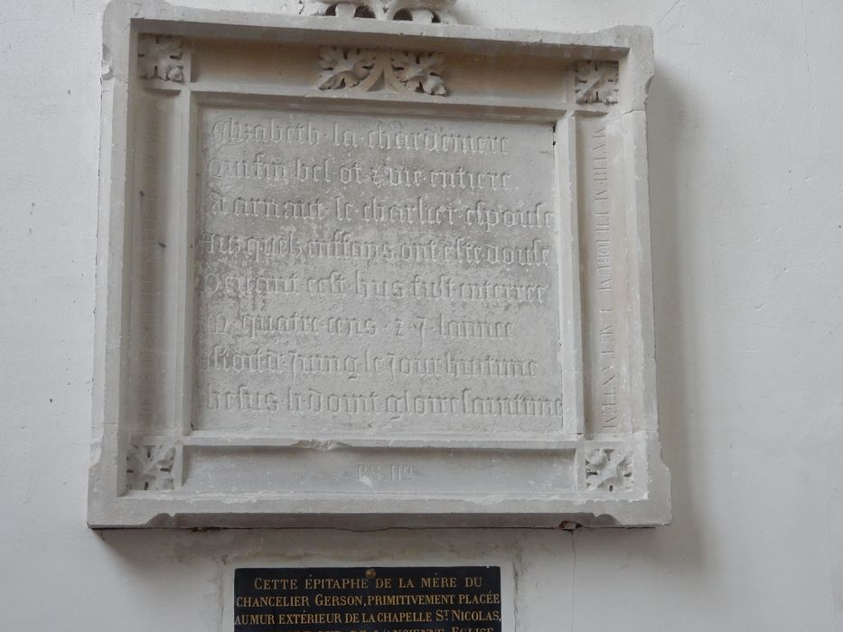 plaque funéraire d'Elisabeth la Chardenière, mère du chancelier Gerson