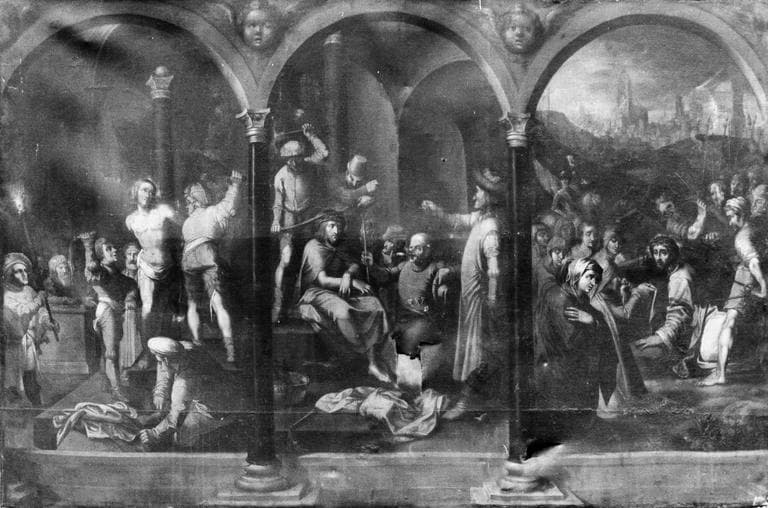 tableau : la Flagellation, le Couronnement d'épines, la Montée au calvaire