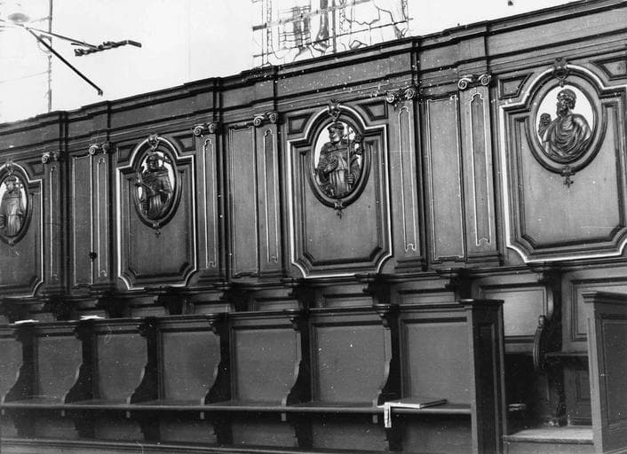 POP | Plateforme ouverte du patrimoinestalles, lambris de revêtement : saint Mathieu, saint Jean, saint Marc, saint Luc, saint Dominique, saint Pierre de Véronne, saint Antoine de Florence, saint Louis Bertrand, sainte Catherine de Sienne, sainte Rose de Lima, saint Hyacinthe de Pologne, saint Pie V pape, saint Vincent Ferrier, saint Thomas d'Aquin