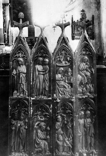 2 bas-reliefs (diptyque) : huit scènes de la vie de la Vierge