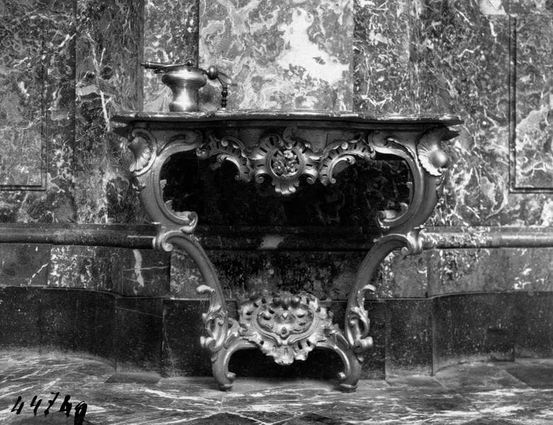 Console en bois sculpté et doré avec panneau de marbre.