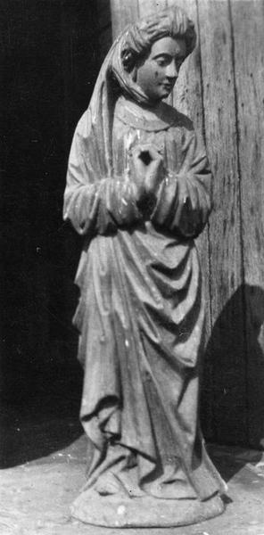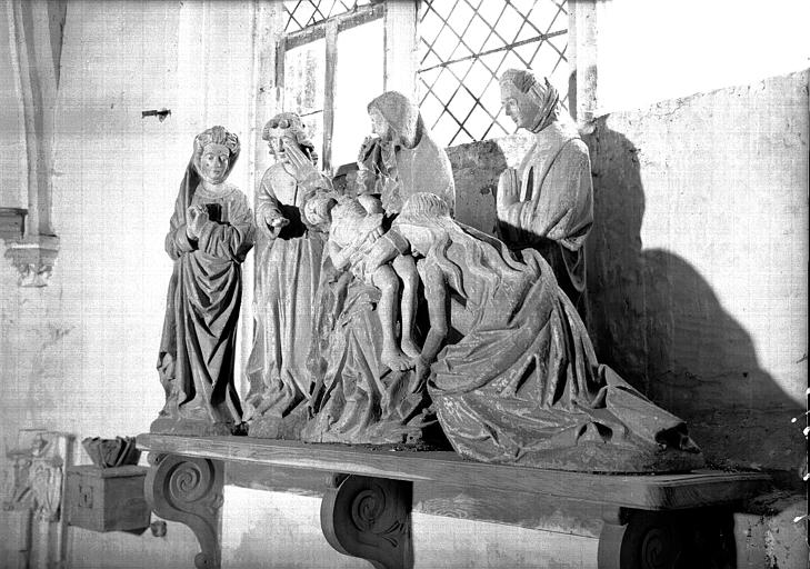 Fait partie du groupe des 'Trois Maries' de la 'Lamentation autour du corps du Christ', série de 7 statues placées derrière l'autel.