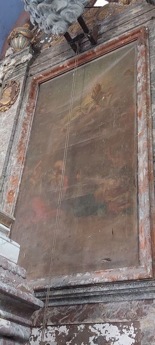 Oeuvre au retable du maître-autel dans un encadrement en marbre rouge Louis XVI.