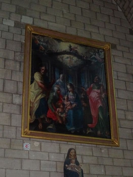Vierge à l'Enfant auquel saint Jean-Baptiste enfant et sainte Elisabeth présentent une coupe de fruits entre saint Pierre et saint Paul.