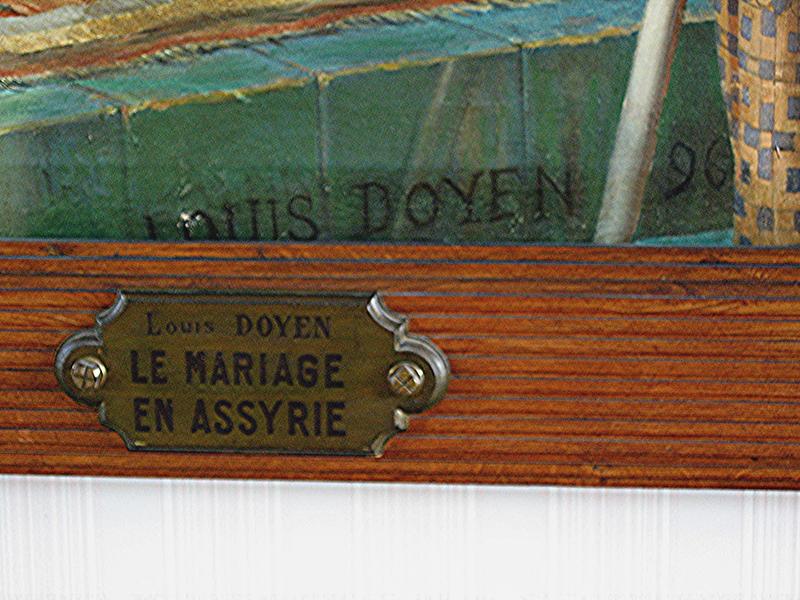 Signature en bas au centre de la toile : LOUIS DOYEN 96. Sur le cartel du cadre : Louis DOYEN / LE MARIAGE / EN ASSYRIE.