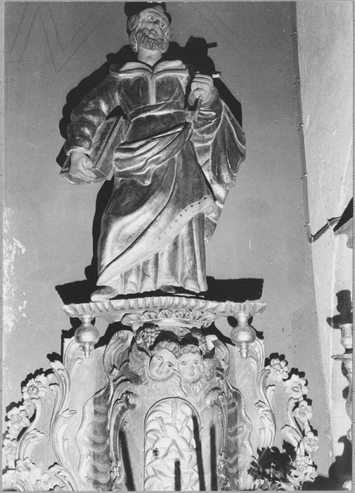 Tabernacle faisant partie de l'ensemble du retable exécuté au 18e siècle, déplacé, de même que la statue de Saint Pierre, dans la partie de l'église construite au 19e siècle.