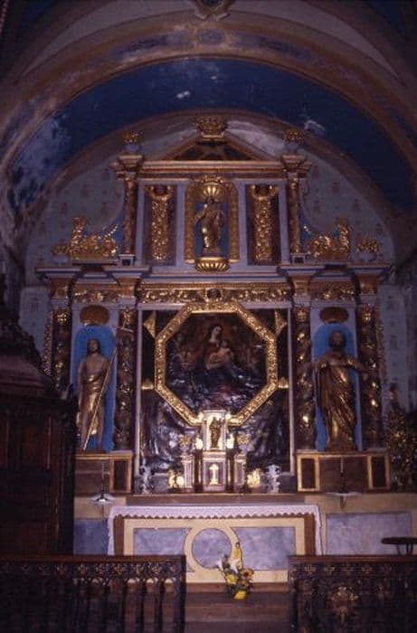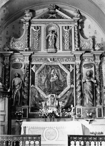 POP | Plateforme ouverte du patrimoineautel, retable, tabernacle, 3 statues, tableau : Vierge à l'Enfant, saint Joseph, saint Jean-Baptiste, Vierge à l'Enfant entourée d'un rosaire