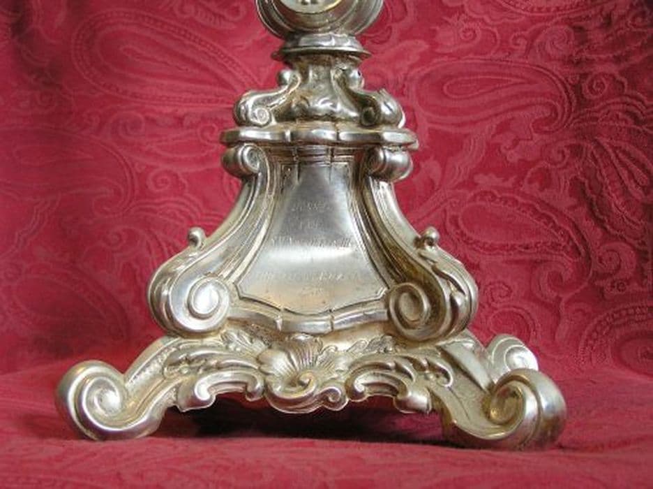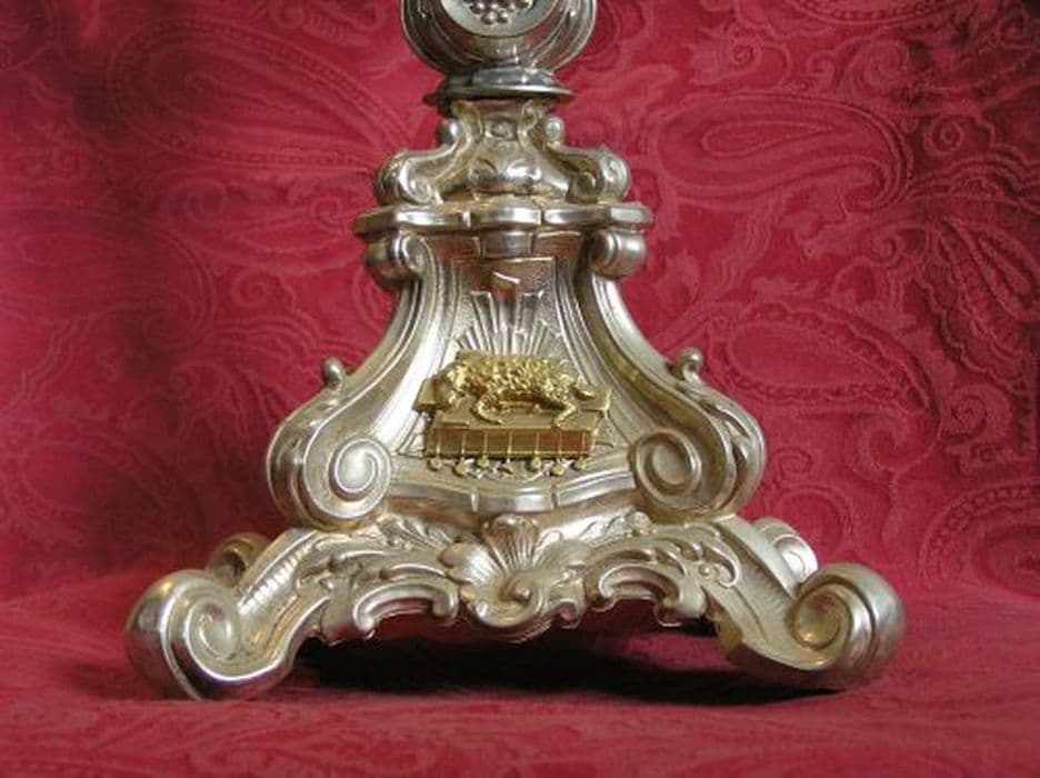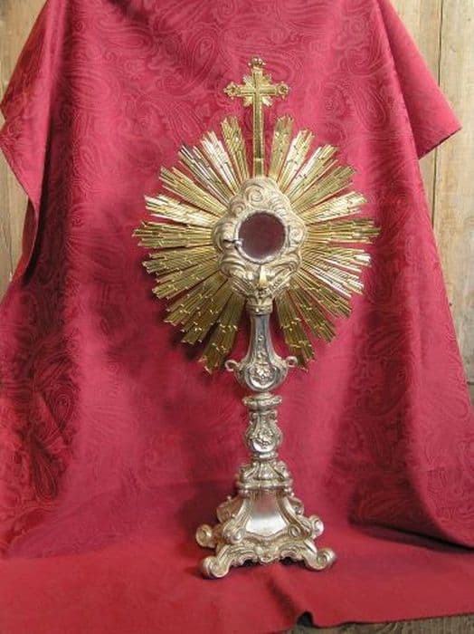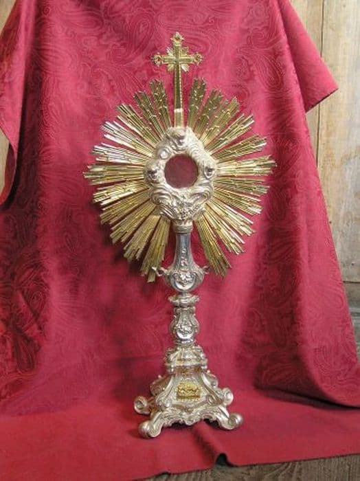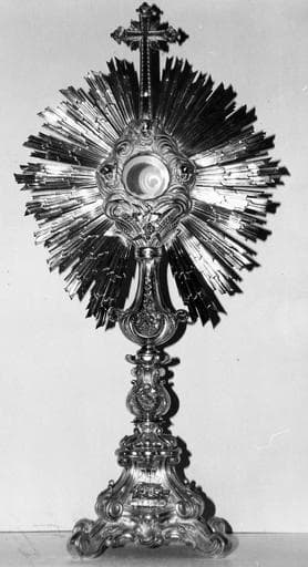 Ostensoir très baroque, gloire à trois têtes d'anges, argent et vermeil.