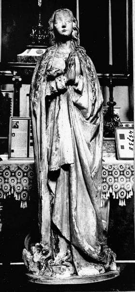 La statue était polychromée mais a été recouverte d'un épais badigeon.