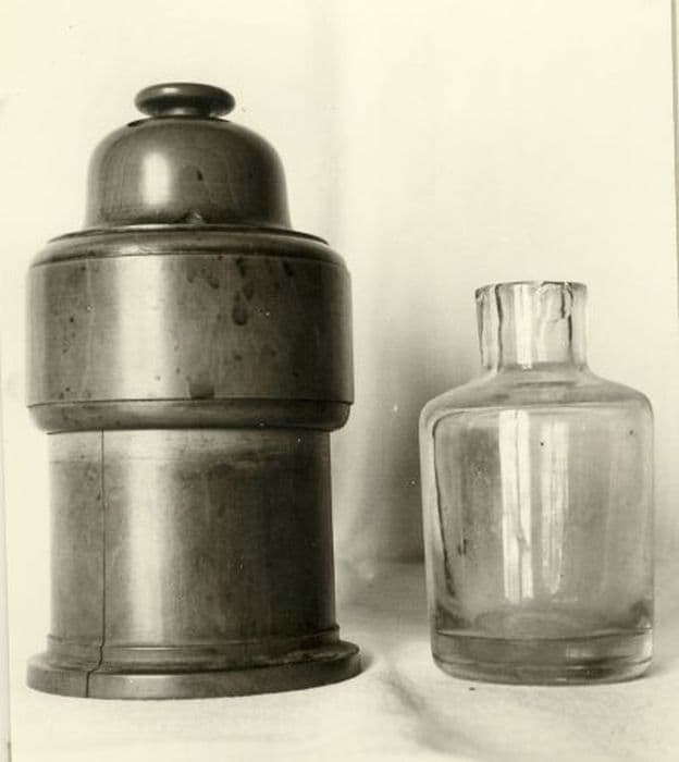 deux instruments ou matériel de pharmacie (boîtes à emporter les sirops)