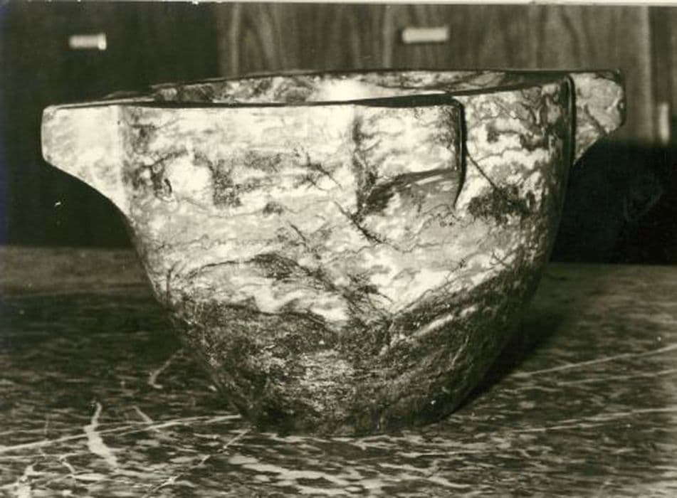 Mortier en marbre gris veiné de blanc .