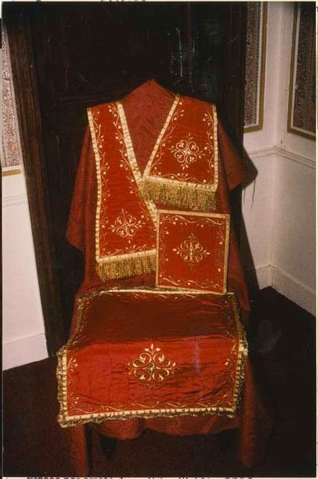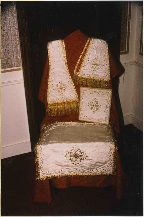 ornement liturgique catholique ; étole de clerc ; voile de calice ; manipule ; bourse de corporal