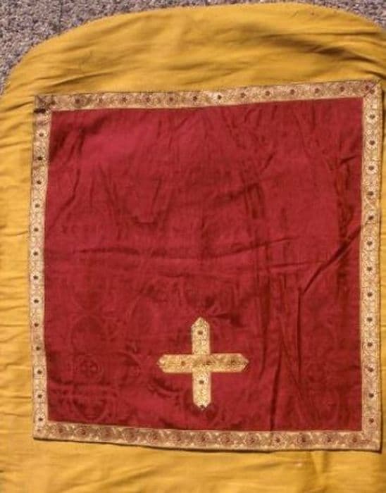 ornement liturgique catholique ; chasuble ; étole de clerc ; manipule ; voile de calice