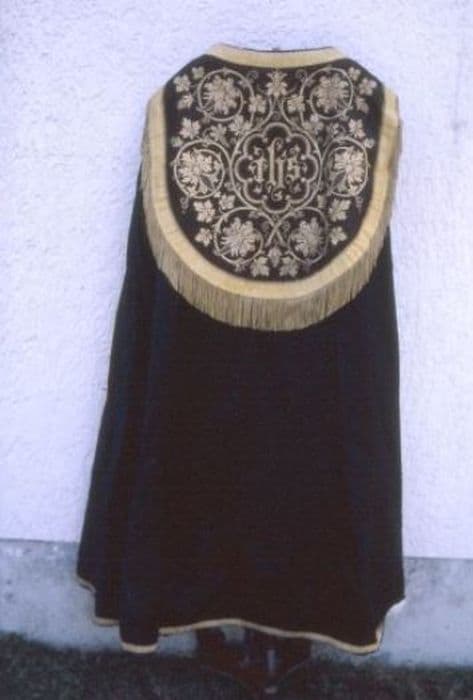 chasuble, deux étoles de clerc, trois manipules, voile de calice et chape (ornement noir)