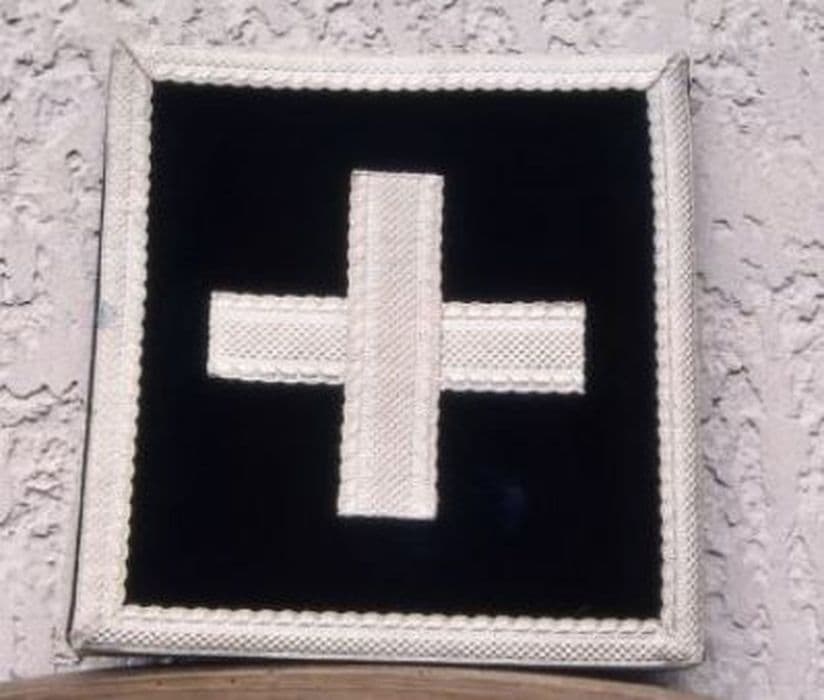 Etole et manipule en tissu noir, de forme triangulaire allongée, bordés de passementerie argentée en tresse avec croix de passementerie. Franges en fil d'argent et doublure noire. Bourse de corporal en tissu noir assortie.