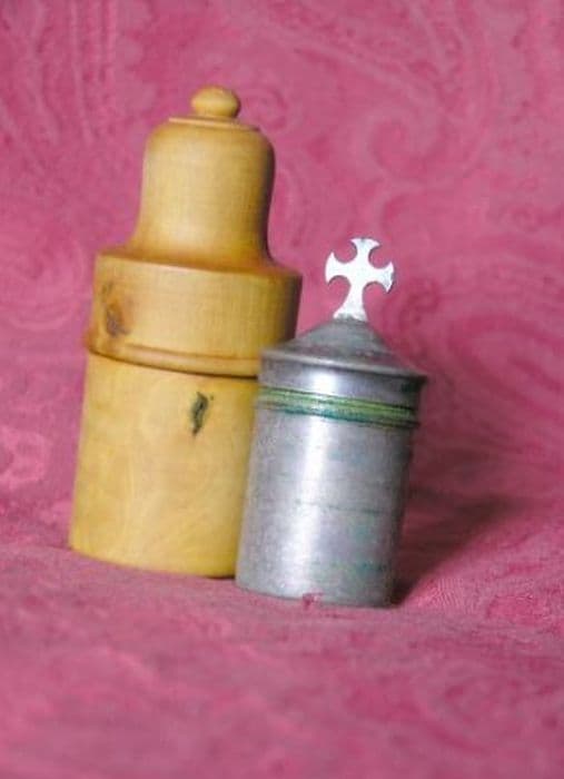 ampoule aux saintes huiles ; coffret aux saintes huiles