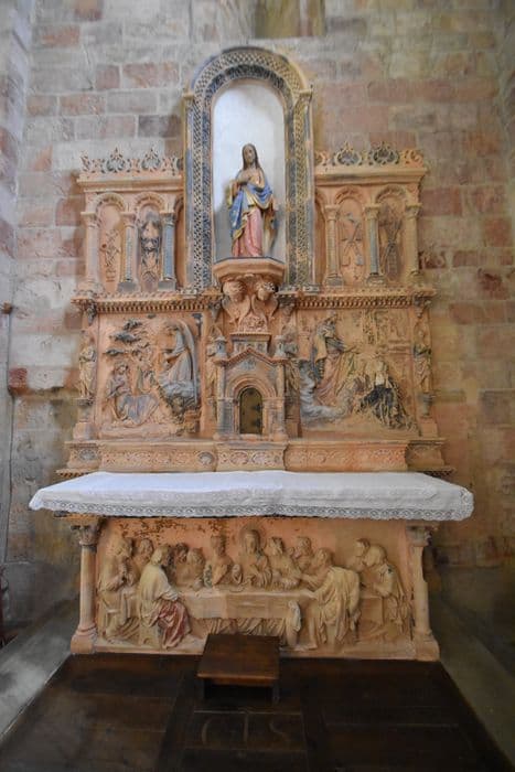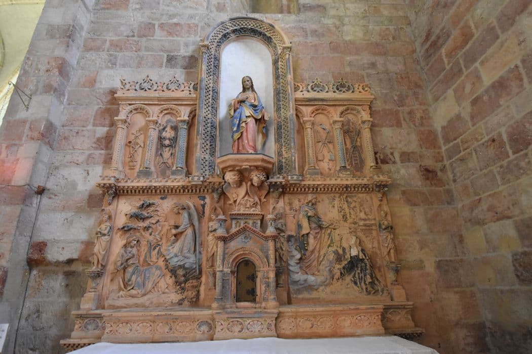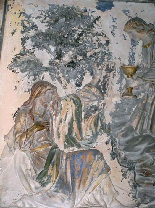 Retable en argile cuite polychrome, genre Virebent.