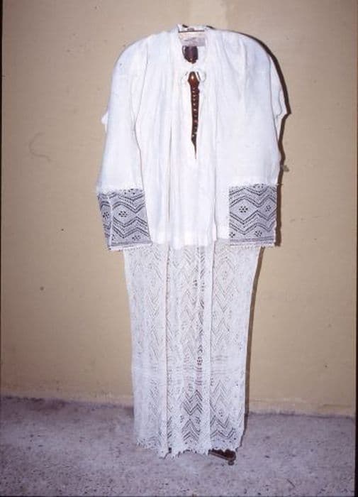 Aube en lin avec sous manches noires.