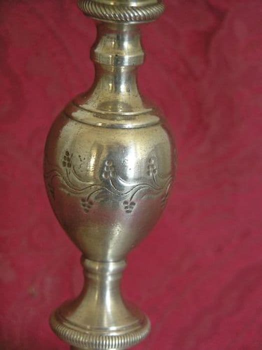 Calice en métal argenté, coupe en argent doré. Pied circulaire au redent gravé d’une guirlande. Dessus gravé de feuilles s’épanouissant du fût, le tout bordé d’une frise striée. Collerette basse striée droite. Noeud ovoïde allongé gravé d’un motif feuillé. Collerette supérieure striée en biais. Coupe épanouie.