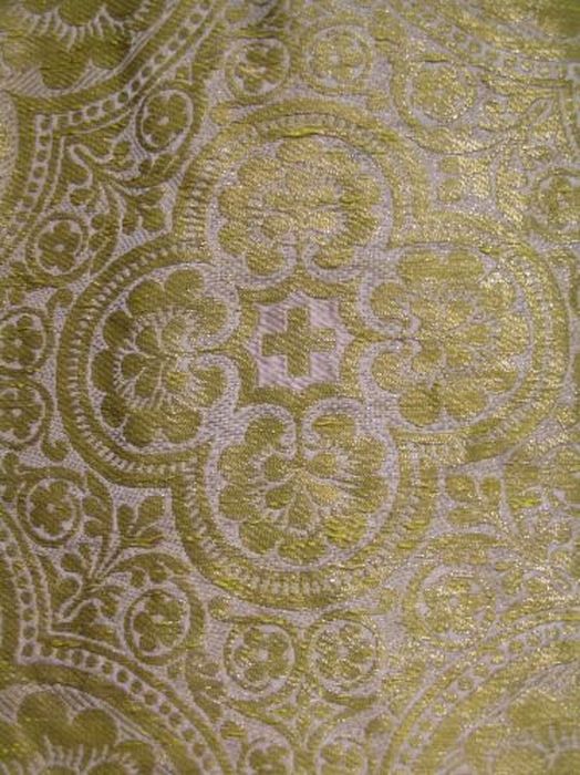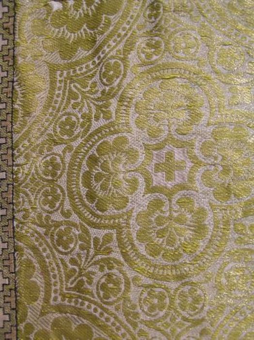 La croix est le modèle n°4517 tissé par la maison Lemire à Lyon, en 1856.