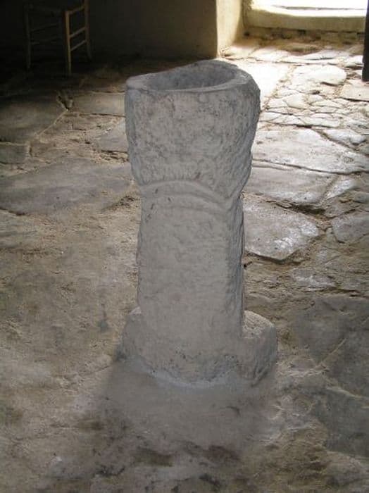 h = 150 (pied) ; l = 91 ; la = 31, pr = 24 (haut ovalisé) ; d = 20 (environ)