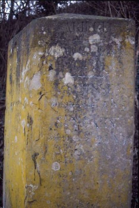 Borne de route impériale n°20 et n°119 en pierre triangulaire gravée.