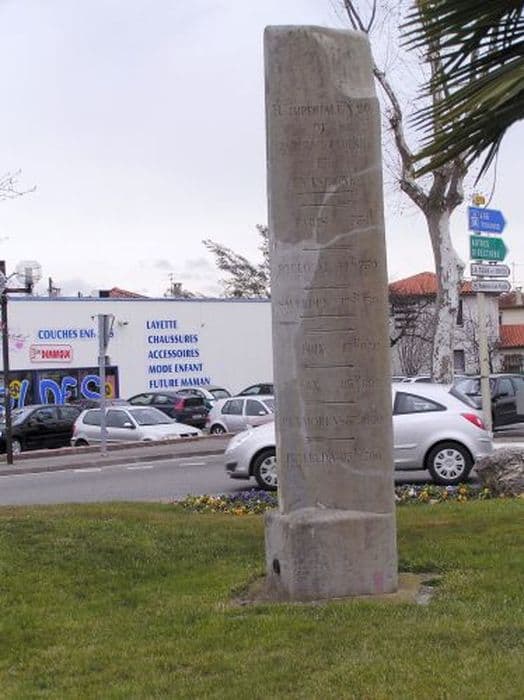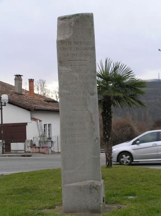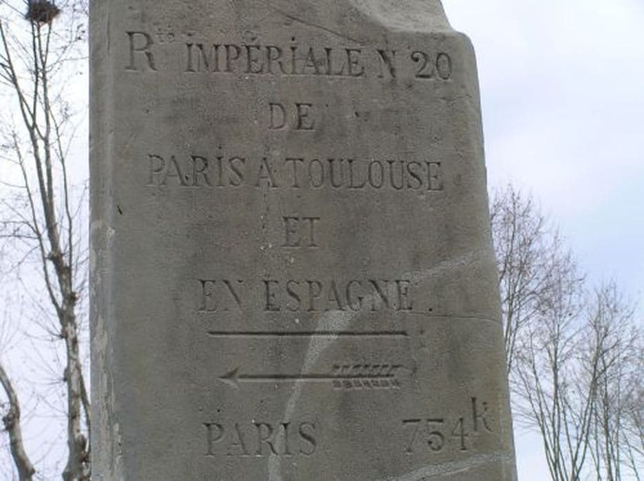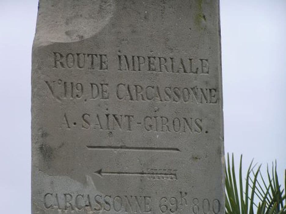 Borne de route impériale n°119 et chemin de grande communication n°10 en pierre triangulaire gravée.
