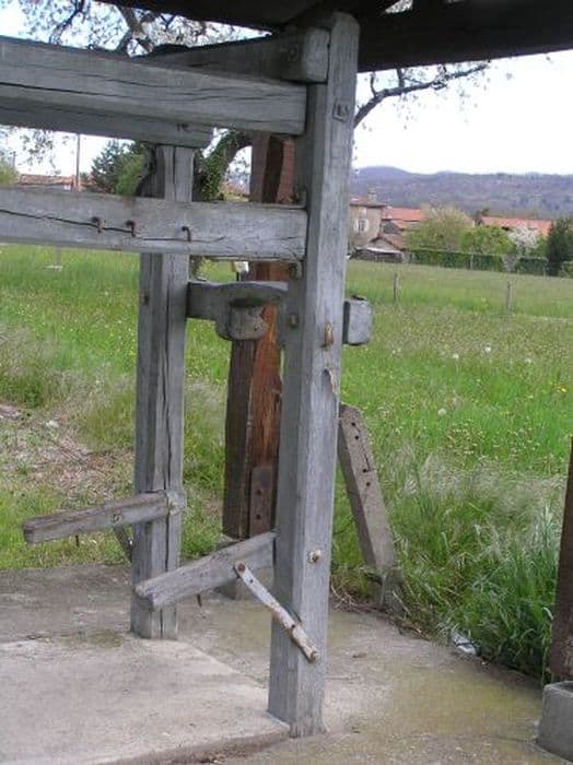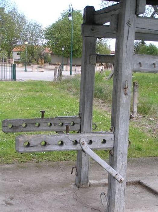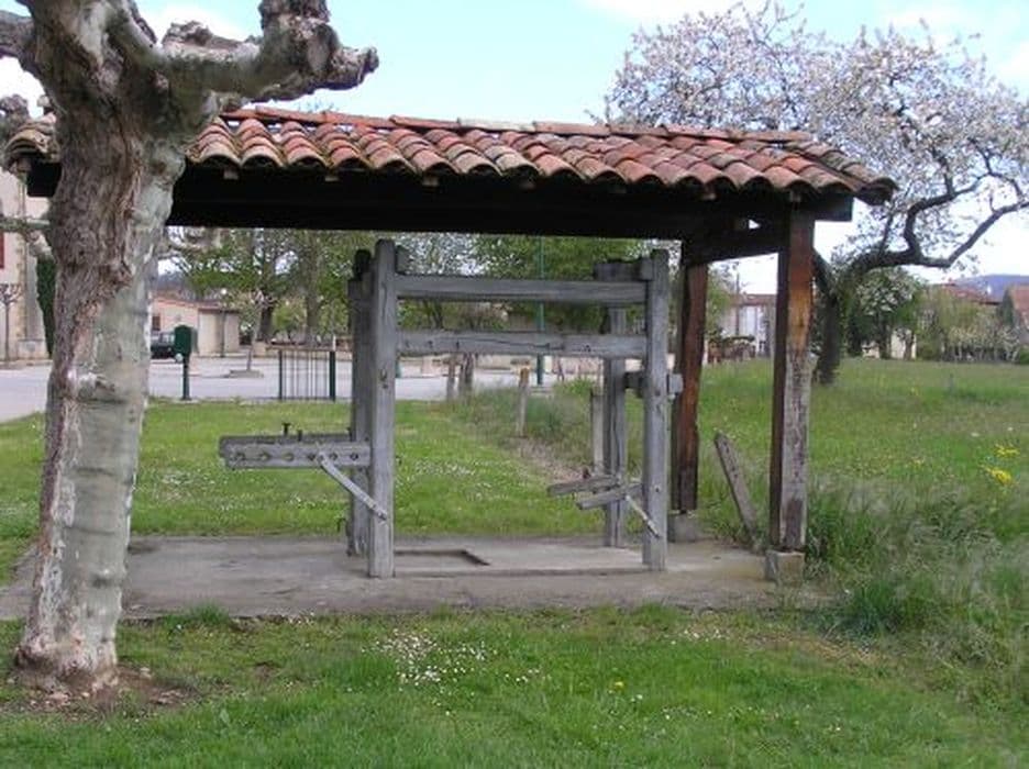 Travail à ferrer les boeufs en bois, situé devant le cimetière de Vernajoul.