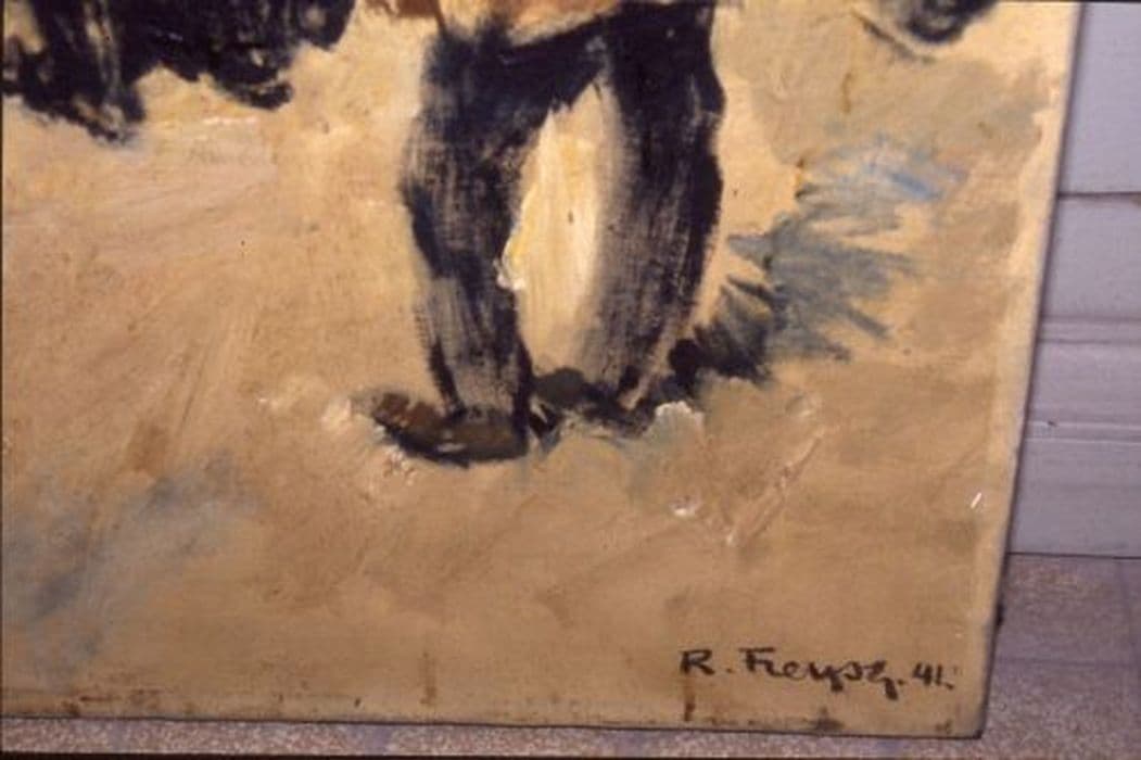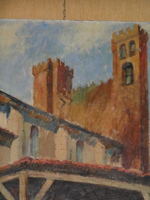 Toile peinte dans un cadre en bois.